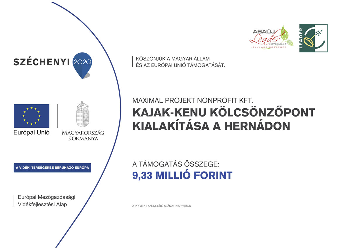 Projekt címe: Kajak-kenu kölcsönzőpont kialakítása a Hernádon